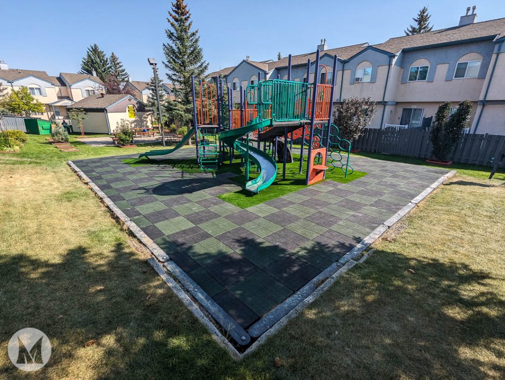 Rymar Play Tiles provide the optimum fall safety for kids’ play environments. Install a Rymar Play Tiles surface and eliminate the need to fill in holes, remove animal waste and potentially dangerous hidden objects. Created from recycled rubber, diverting tonnes of waste from landfills, Rymar Play Tiles are durable, resilient, and porous to allow drainage.